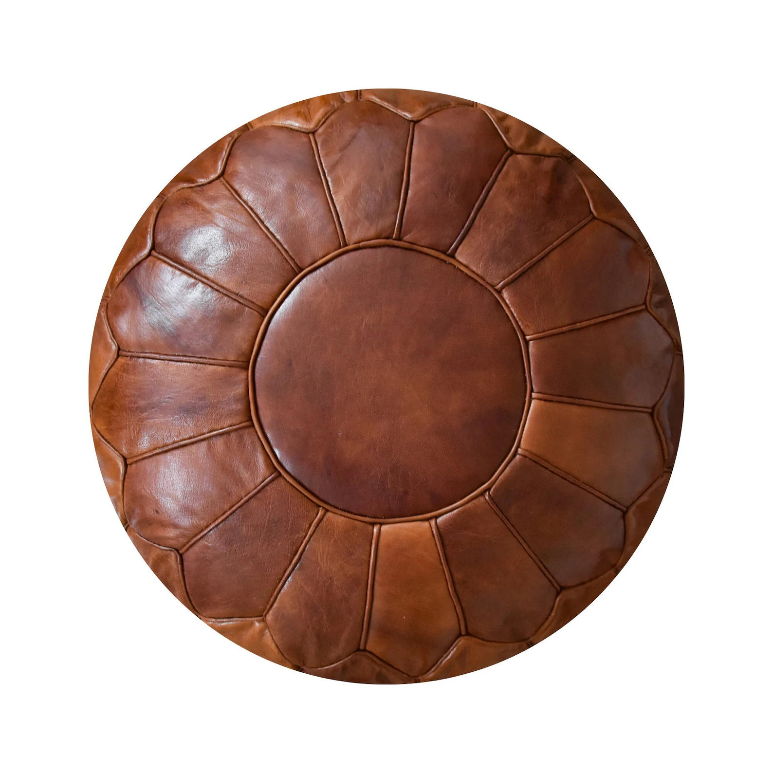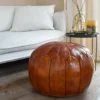 Elevate your space with the timeless elegance of this brown Moroccan pouf ottoman. Handcrafted from premium leather, this versatile ottoman is both stylish and functional. Whether used as a footrest, extra seating, or a decorative accent, its rich brown tone adds warmth to any room.